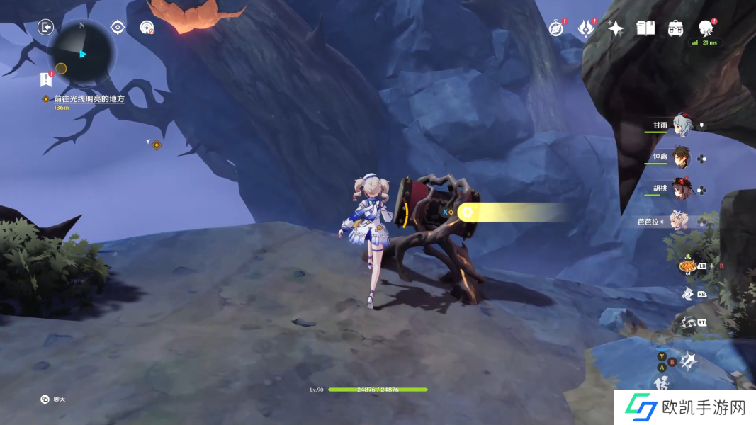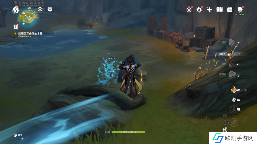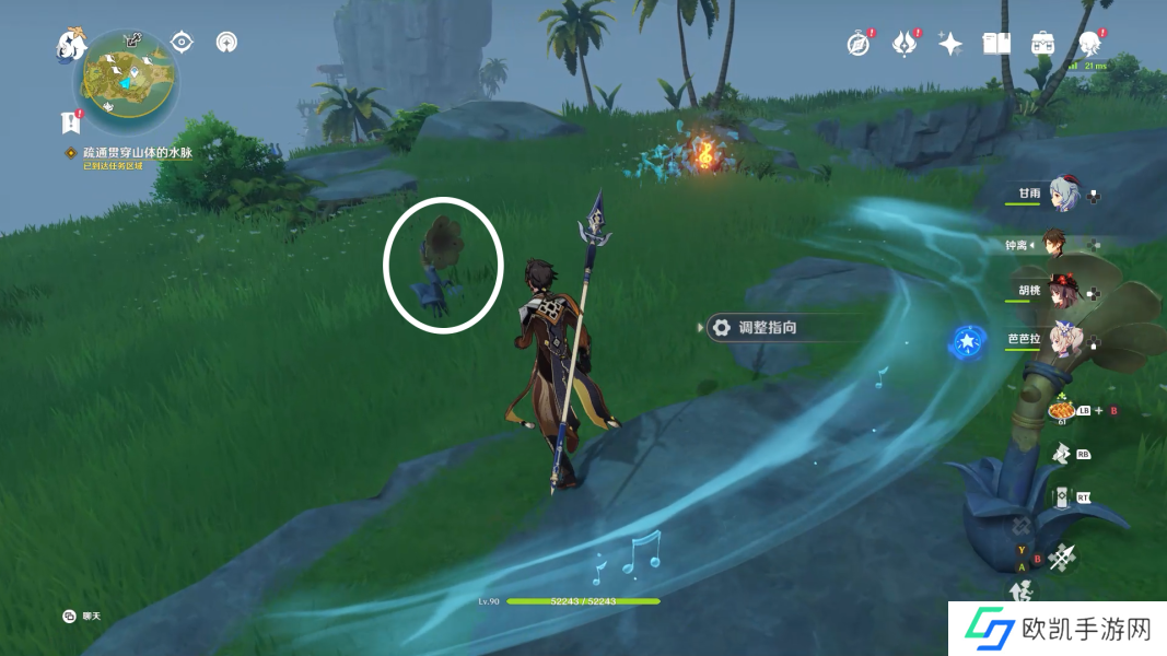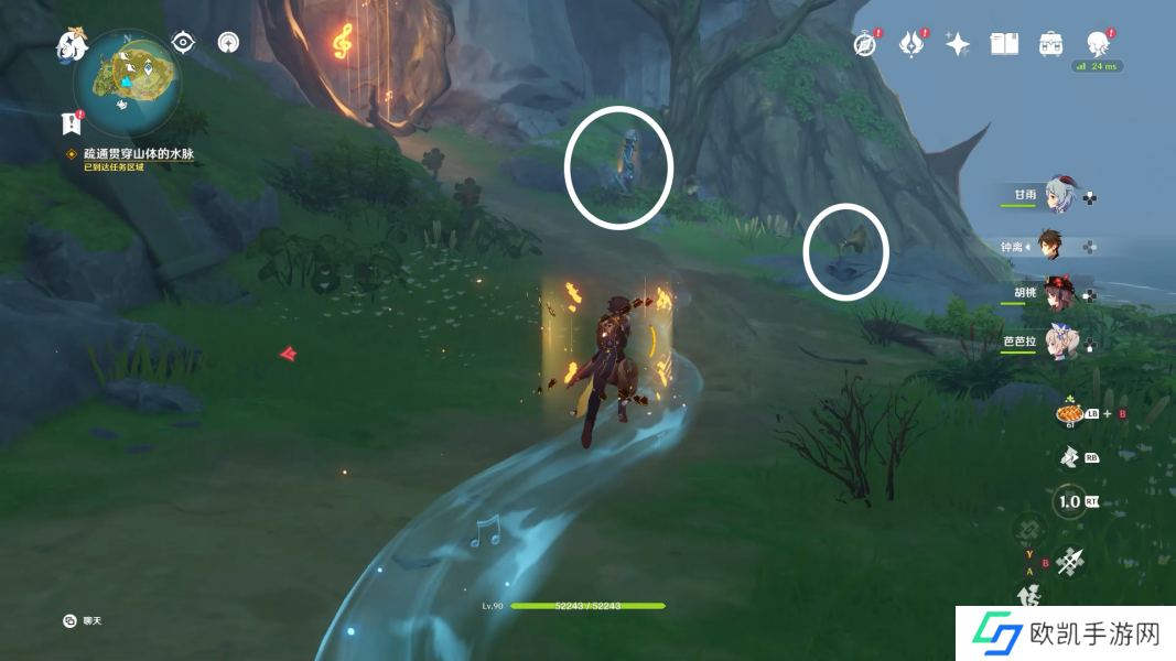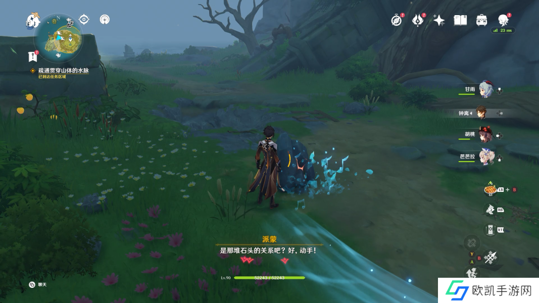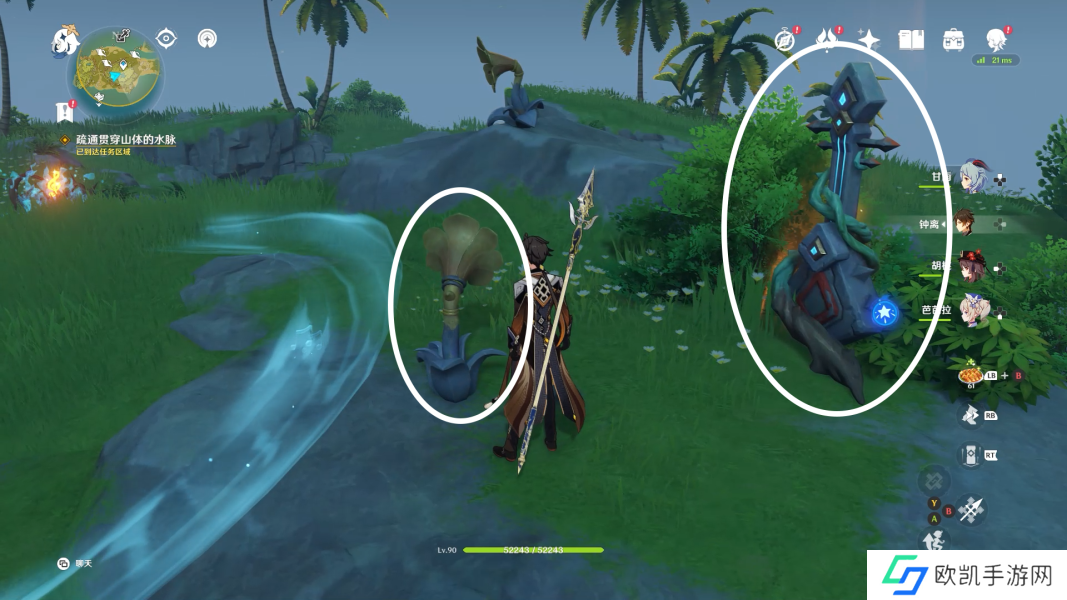 跑到一半的时候发现一块石头堵住了水流 用钟离/雷泽的E或任意大剑角色的A打碎即可