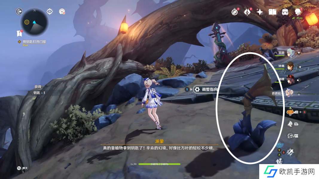 乘坐浮空平台到对面的小岛乐器对面的喇叭花转1次(下图左边白圈)