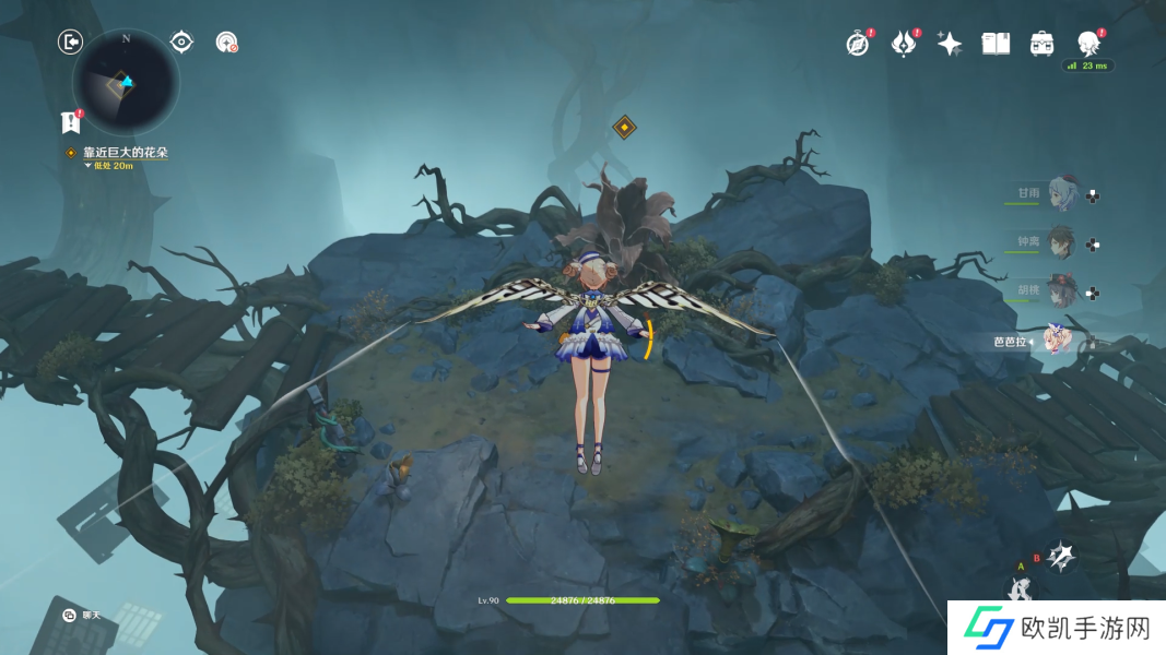 然后弹奏乐器(上图右边白圈)跟随风场飞到对面的小岛
