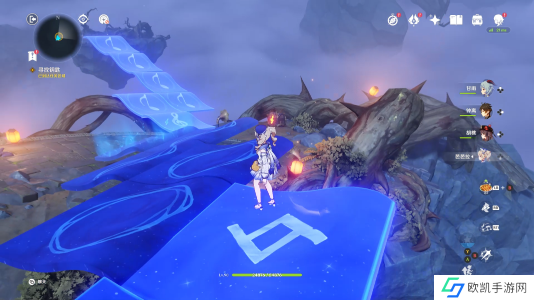 跟随任务指引飞到对面的小岛踩到音奏踏板上这个与稻妻的踩地板解密类似