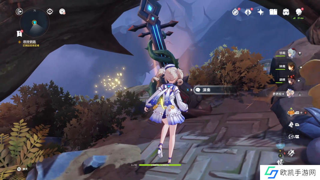 演奏乐器飞到对面的平台用刚才拿到的钥匙开门
