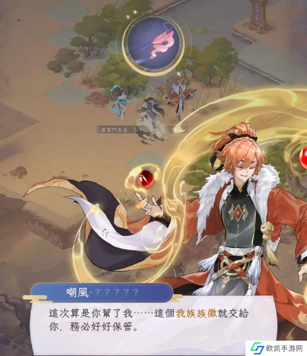 2、第一个:去第三章芙蓉潭找嘲风,点几下嘲风就会得到族徽