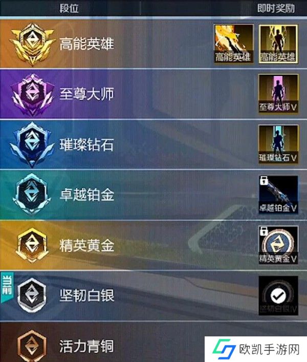 高能英雄段位表: