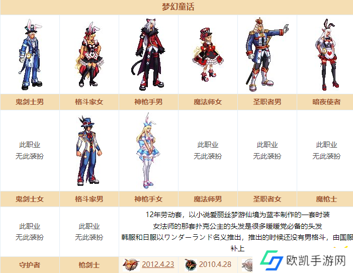 12年劳动套,以小说爱丽丝梦游仙境为蓝本制作的一套时装,女法师的那套扑克公主的头发是很多暖暖党必备的头发,韩服和日服以ワンダーランド名义推出,推出的时候还没有男格斗,由国服补上。