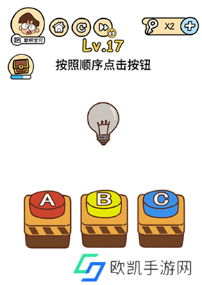 脑洞大大大第17关怎么过?第17关的题目是“按照顺序点击按钮”,在这一关中我们只要按照灯泡颜色顺序去按按钮即可,下面小编就为大家带来了脑洞大大大第17关攻略。