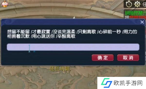 梦幻西游此前开放了一个胡姬琵琶行活动,在活动中会出现很多以歌词为主的题目,我们只需要答出这些歌词来自哪首歌就可以了,虽然大部分都是脍炙人口的歌曲,但可能需要多想一会儿。