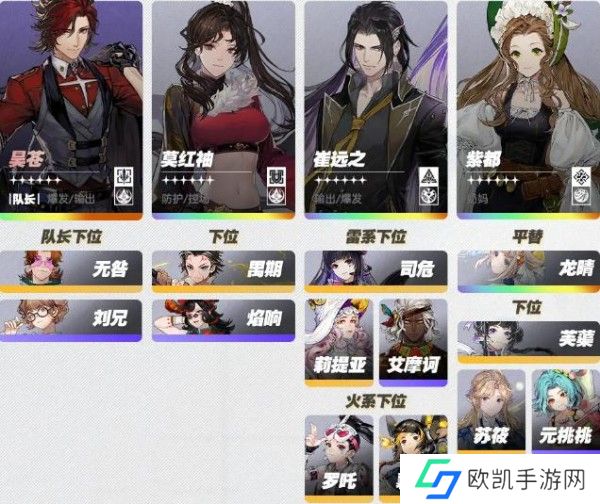 2、无咎、禺期、司危、龙晴等角色可以作为替补。