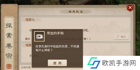 2、第一个证物我们按照系统给出的线索来进行,证物是带血的手帕。