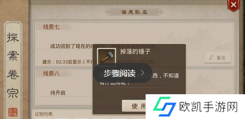 4、第三个证物是掉落的锤子,同样的按照提示去寻找。