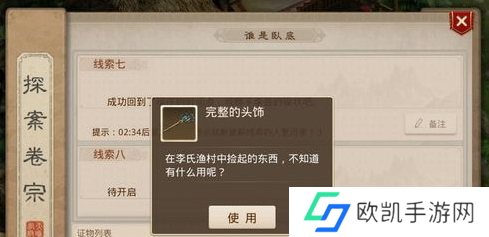 3、第二个证物也是一样,按照提示去收集,证物是完整的头饰。