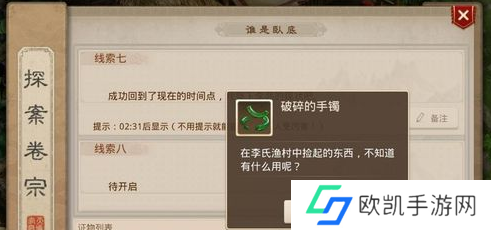 5、第四个证物需要我们回到现在的时间点,证物是破碎的手镯。