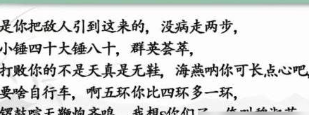 现在,我们已经成功通关了汉字找茬王快乐源泉小品相声金句关卡。通过细心观察和思考,我们成功地连接了所有的金句。这个过程虽然有些繁琐,但最终的结果是值得的。我们不仅得到了有趣的句子,还锻炼了自己的思考能力和观察力。