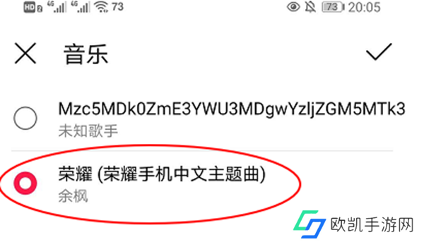 8、然后我们只需要将自己喜欢的音乐选中,然后点击右上角的√就行了。