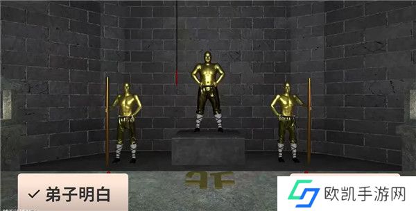 2、看到场地中间有三位大师,其中一位大师会对你讲述游戏规则,“闭眼静听,先后五枚铜钱抛出,如果辨别方位,方可过关,否则必遭严惩”。