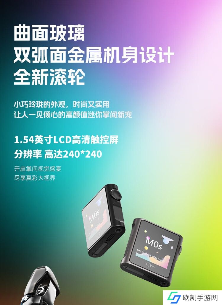 山灵 M0s 搭载一块 1.54 英寸高清触摸屏(分辨率 240×240),有黑色与钛色可选;采用君正 X1000 主控芯片,使用 MTouch OS 操作系统;650mAh 电池,续航 14.5 小时,深度待机一个月。