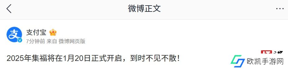 本站 12 月 31 日消息,支付宝官方今日发文宣布,2025 年集福活动将于 1 月 20 日(此处预计指 2025 年 1 月 20 日)正式开启。