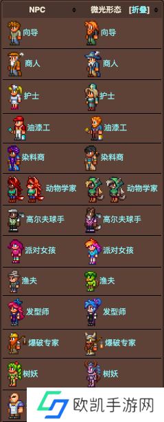 在浸没在微光中后,任何 NPC(城镇宠物除外)会变为其微光形态。