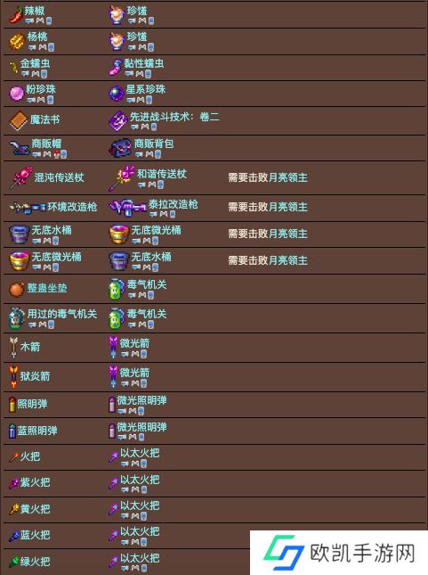 1、微光是泰拉瑞亚中的一种淡紫色珠光液体,它可以转化物品。