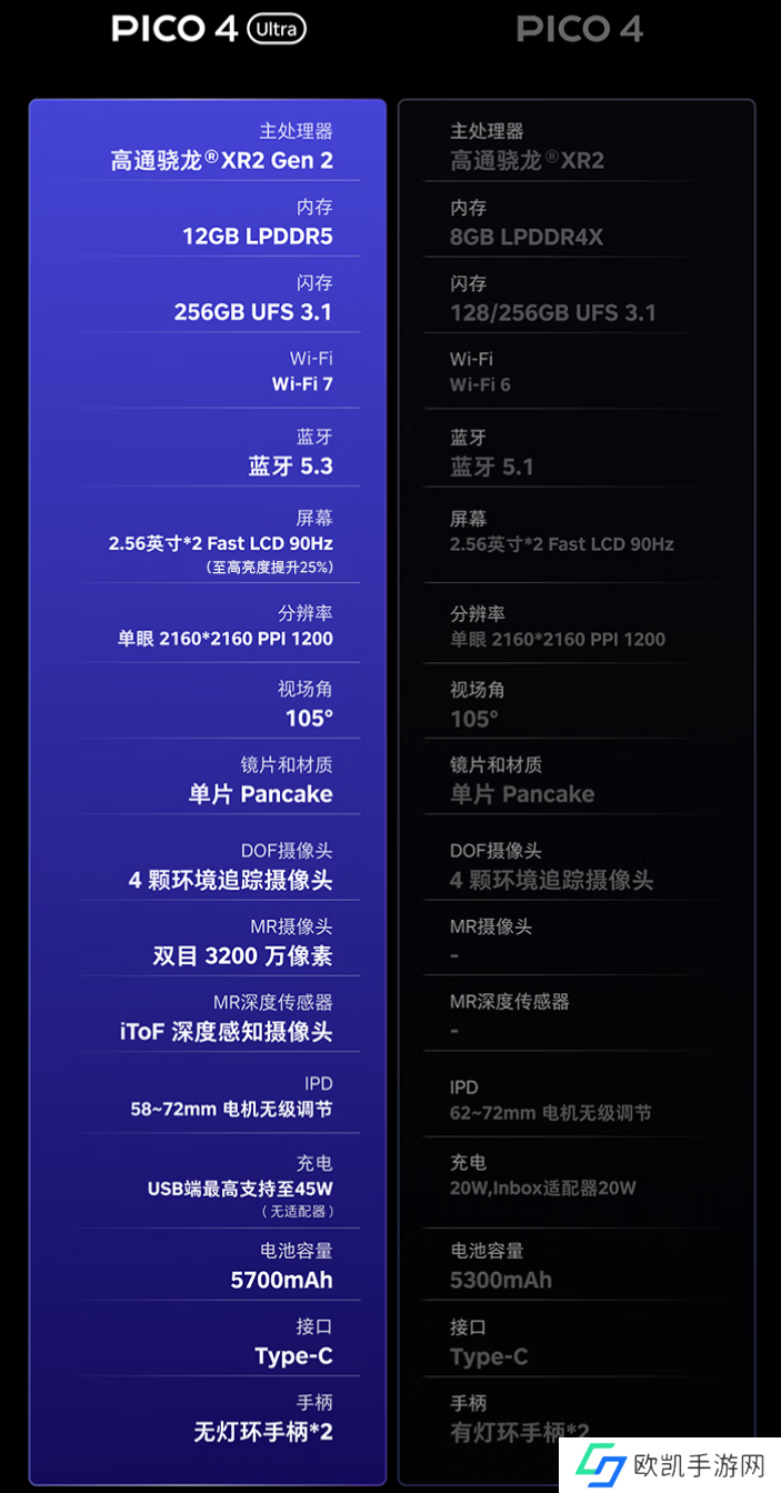 本站附字节跳动 PICO 4 Ultra MR 一体机参数信息如下: