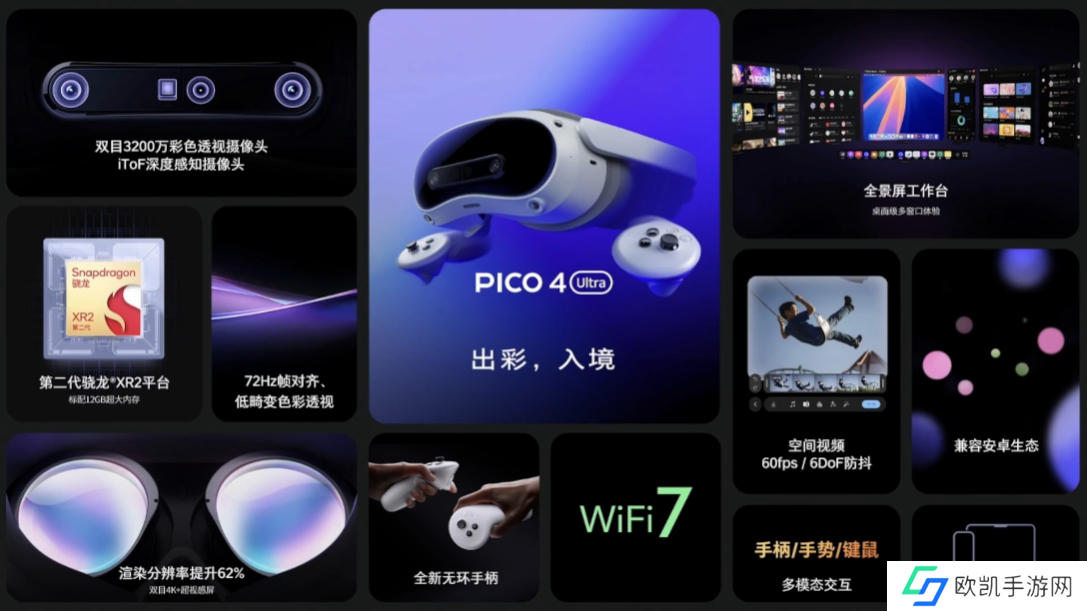 字节跳动 PICO 4 Ultra MR 一体机亮点如下: