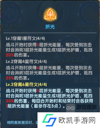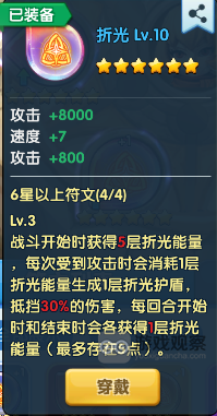 2、前期多次30%的伤害减免很大程度上提升了装备英雄在释放技能前的存活概率,同时每回合两点能量的回复,提升了装备此符文英雄的长期作战能力,是一套在战斗前期和后期均能获得稳定性收益的符文。