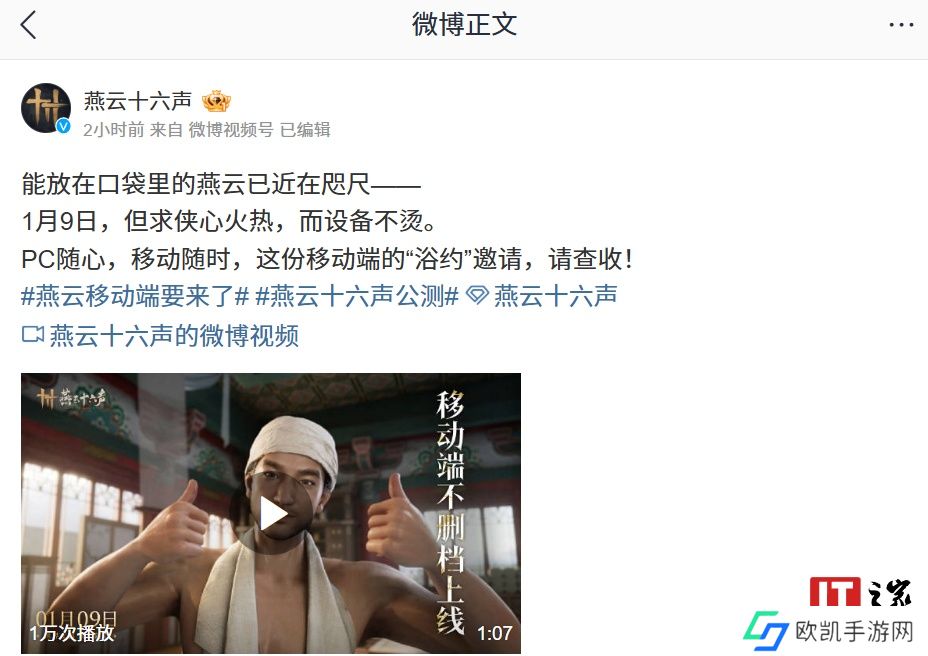 本站 12 月 30 日消息,网易武侠游戏《燕云十六声》今日官宣移动端 1 月 9 日(此处预计指 2025 年)不删档上线。官方称“目前,移动端团队已经完成了对玩法内容的移植优化,正在进行最后的上线准备。”