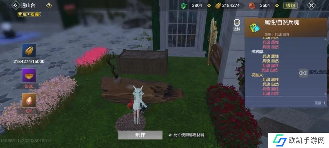 2、【远山台-临摹-合成】需要使用贝币、颐魂液、焕魂符作为材料,只会产出橙色和红色品质的属性、自然、特性、神力兵魂,但产出的兵魂品质、属性、种类都随机。