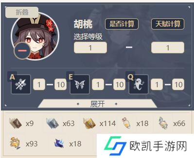 如果我们想要练一个胡桃,最好提前刷好她的天赋材料,这样抽到之后就能直接升了,为此需要统计好她需要多少天赋材料,避免刷太多溢出或者刷少了不够用。