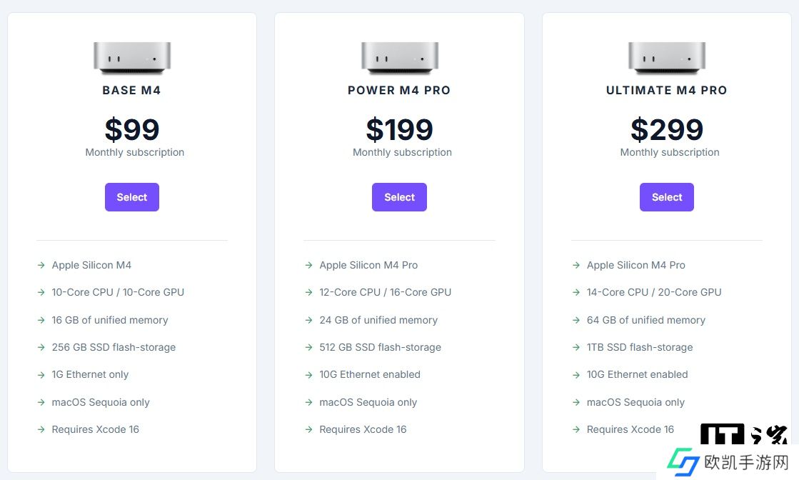 每月 199 美元(当前约 1444 元人民币)的 M4 Pro(12 核 CPU 和 24GB 统一内存)专业版,适用于应用开发和测试。