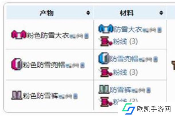 3、就可以获得粉色防雪兜帽、粉色防雪大衣和粉色防雪裤。