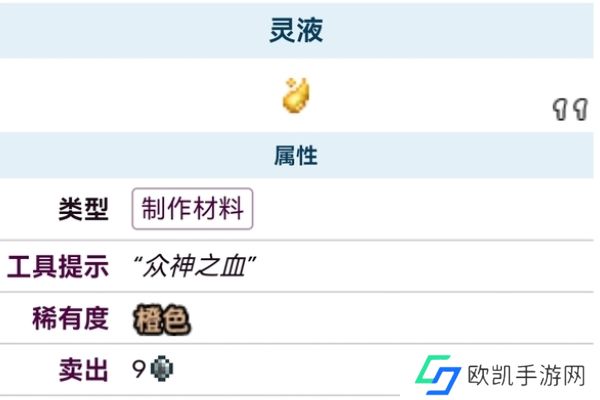 泰拉瑞亚灵液是困难模式下的制作材料,可以在地下腐化之地、猩红之地沙漠中获得,获取难度低的同时效果非常优秀,不管是拿来打怪还是只做其他材料都非常优秀。