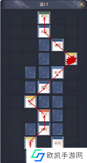 4、渡口:前进-小铜匣-前进-敌人-遗落木匣-前进-船夫-木匣-湖心岛