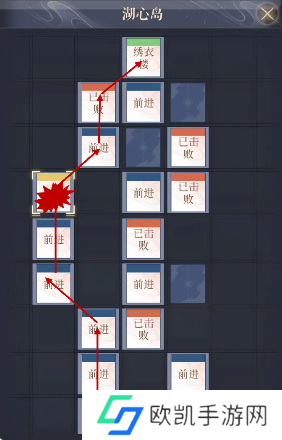 5、湖心岛:前进-小铜匣-前进-敌人-绣衣楼