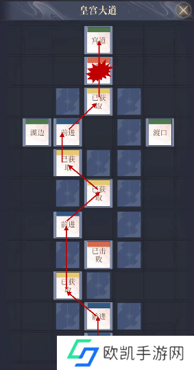 1、皇宫大道:前进-木匣-前进-木匣-木匣-前进-木匣-敌人-宫道