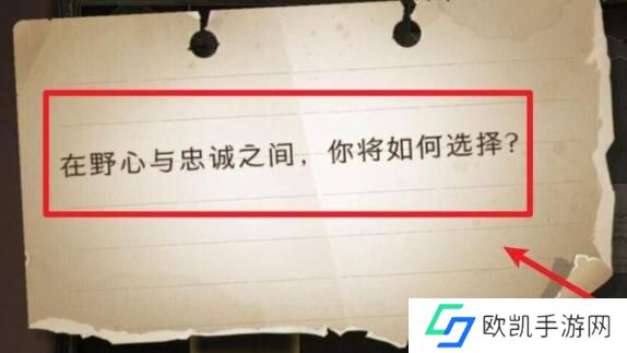 1、首先我们需要拿到一张写着“野心与忠诚之间你将如何选择”的纸条。