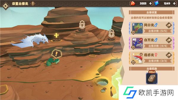 2、进入育龙温泉后,点击右下角的“出借”按钮,可以设置自己出借的龙,成功出借可以获得龙之石为奖励,每周获得出借奖励的龙之石上限为200个。