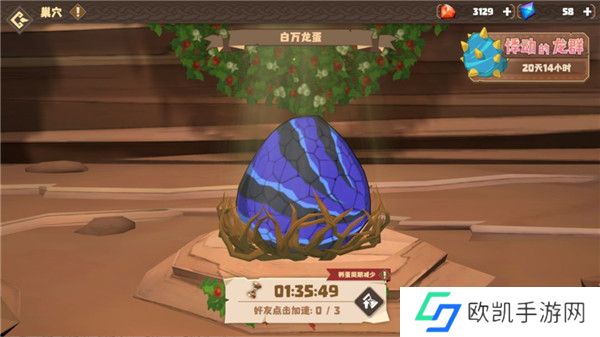 6、龙繁育出的龙蛋需要消耗一定时间进行孵化,如果好友来到岛上抚摸孵化中的蛋,可以减少龙蛋的孵化时间,同一只蛋最多可以被抚摸3次。