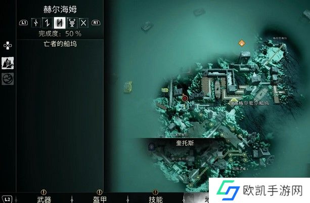 4、来到赫尔海姆亡者的船坞,在下图位置就可以找到传奇宝箱,打开后会获得轻符文攻击“千军突刺”。