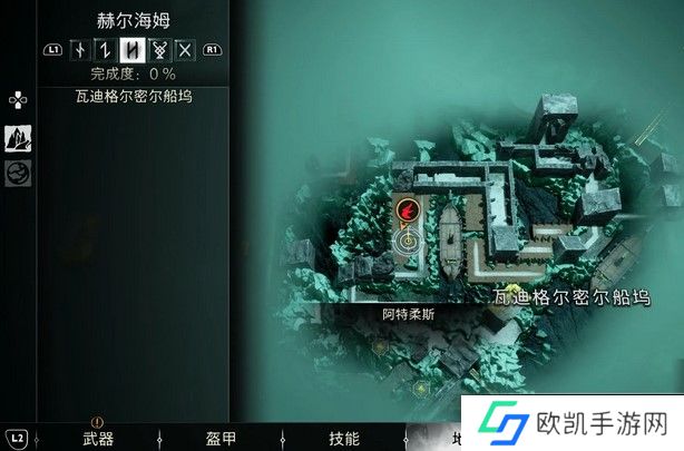 5、来到赫尔海姆瓦迪格尔密尔船坞,就可以找到传奇宝箱,打开后会获得盾牌“突袭盾牌”(虽然不计入完成度但会计入盾牌收集奖杯)。