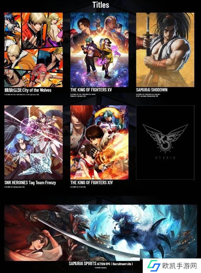 注意到,该工作室目前正在开发《饿狼传说群狼之城》以及《侍魂》的 ARPG 游戏,以往的作品包含《拳皇 14》《拳皇 15》《侍魂(2019)》《SNK 女中豪杰狂暴双打》。