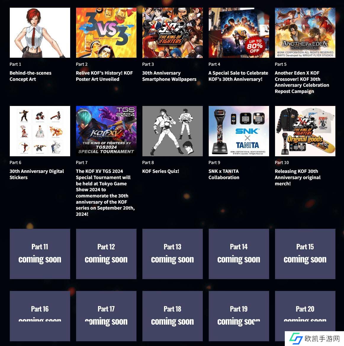 1994 年,SNK 在 Neo Geo 平台上推出了一款名为《拳皇 "94》的格斗游戏,该游戏集结了《饿狼传说》系列的人气角色,一经推出便风靡街机厅,其独特的组队系统更是独树一帜。官方为本次周年庆设立了专门的网站,根据网站信息,30 个项目将会陆续公布。