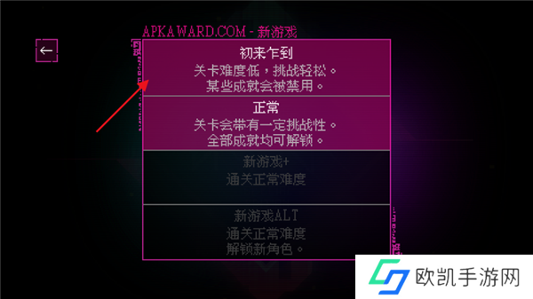6、初来乍到,新手玩家建议从难度低的关卡开始玩,每个难度都有四个存档;