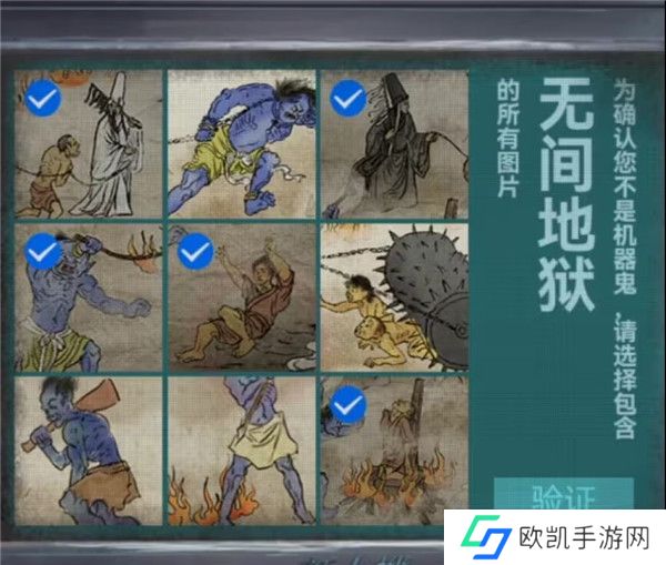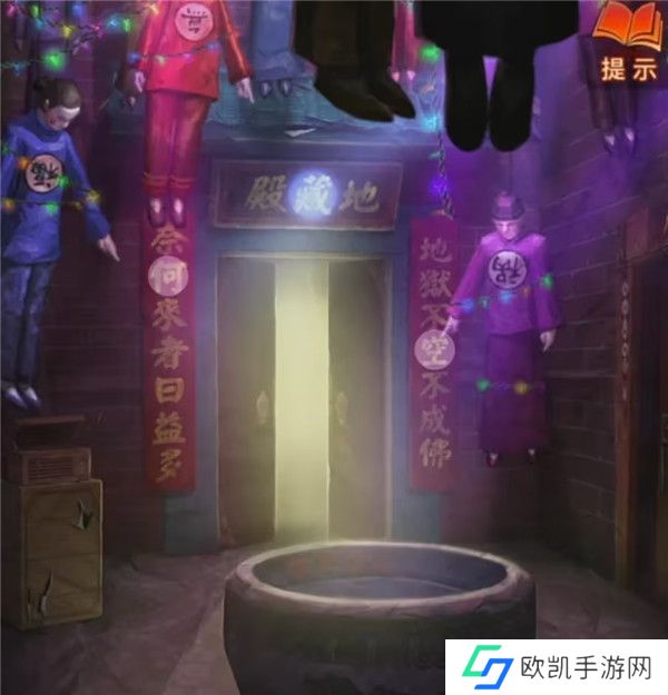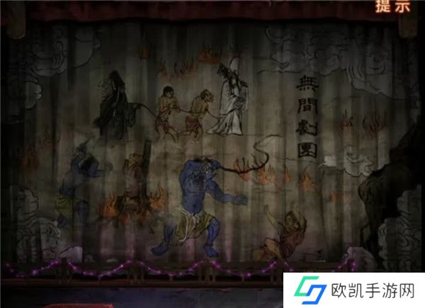 20、剧情结束之后幕布上出现地狱图,记一下上面出现的都有什么东西,有拉着人的****,在烧人的鬼和推倒人的鬼,再次回到音乐厅查看纸人机,上面写了可以买一赠一,但是需要填写验证码,将地狱图中出现的内容都选择一下点击验证拿到纸人头发。