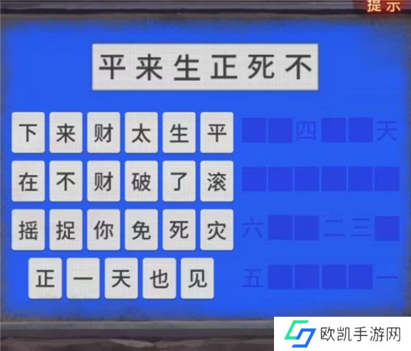 13、那么我们就能获得线索4=正,6=不,2=来,3=生,5=死,1=平,所以我们按照顺序排列一下就是平来生正死不,找一下这几个字输入后可以查看三生,这里今生会有剧情,不过这不影响我们掏出小卡片,将三生所有出现在框框中的文字都给记录下来。