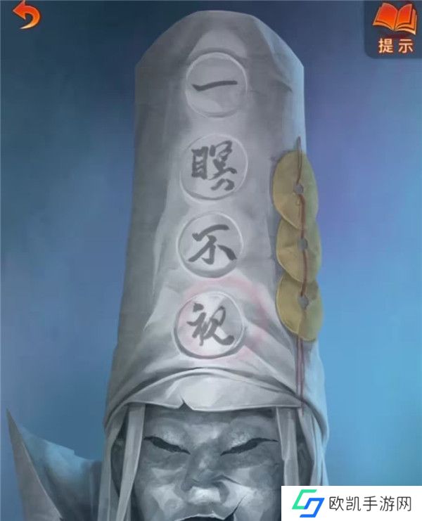 22、**道士消失后记得查看一下地上掉落的东西,是他的帽子,里面还有几根头发,这样黑心的头发不就有了,再加上纸人是无心的,回到阴阳牢,查看一下牢房,将黑心头发放在八不郎左边,纸人头发放在八不郎右边,然后就从桶里拿到钥匙了,对牢房使用钥匙开门,看剧情本章结束。