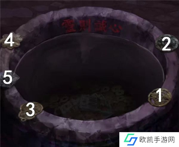 1、剧情过后拿走水缸旁边的花钱,右边倒吊人手里拿到有孔的卡片,左边有一串图案记一下,是从下往上的窗花-圆形-葫芦-小花-五边形,查看左边的柜子,从唱片机上拿到五枚纸钱,对中间水缸使用纸钱后按照右边门上的顺序依次点击纸钱,五枚纸钱扔完小高能注意,后退一下就发现门开了,进入菩萨房间。