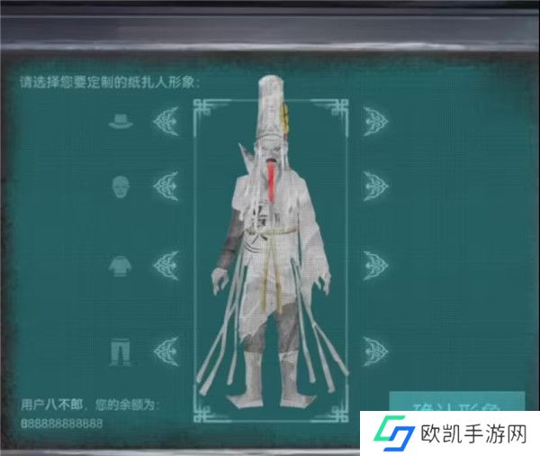 16、再次回到音乐厅,对舞台后面的纸人机输入密码,前面祸无福对应的就是空藏何了,右边的灯笼、扇子、云朵对应的就是唵、娑、诃,调整完毕后我们可以玩换装小游戏了,强烈要求奇迹老登加入换装系统!我们需要调整的是白无常,想一想前面对于白无常的记忆,调整到如下图后点击确认形象。