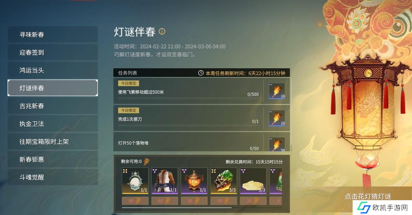 以上就是永劫无间2024最新猜灯谜答案大全一览的所有的内容,玩家可以按照我们提供的问题和答案来进行答题,希望对各位玩家有所帮助。