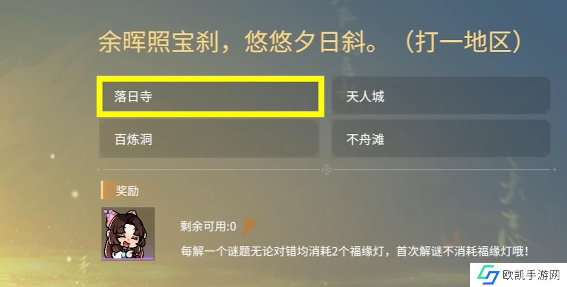 问题五:余晖照宝刹,悠悠夕日斜。(打一地区)