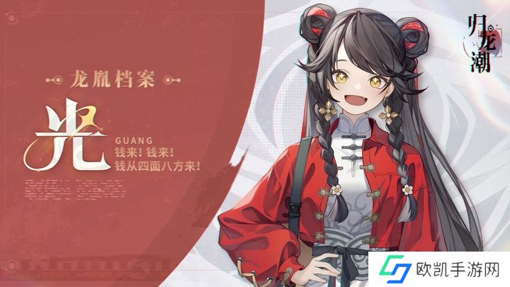 【光】:虬龙阶角色,金属性支援角色,御三家之一,奥义可以给队伍提供奥义伤害加成,加成就业面相对较窄,而且也是一个侧重于补充伤害的角色,有高胤痕或者是【瑶瑶】、【千钧】能组成金队的话可以考虑尝试培养,其他情况培养优先级不高。
